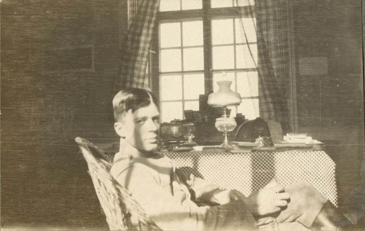 Titel: Soldat vid bordet.