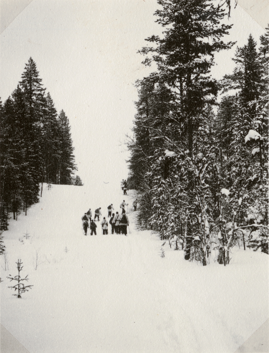 Text i fotoalbum: "AIHS vinterfältövning vid Sälen 15.-22. febr. 1942. Rekognosering i gränsgatan till Norge 16/2".