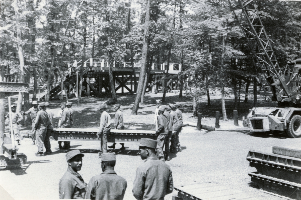 Titel: Text i fotoalbum: "Studieresa i USA mars-juni 1953. Heavy Girder Bridge, Fort Belvoir".