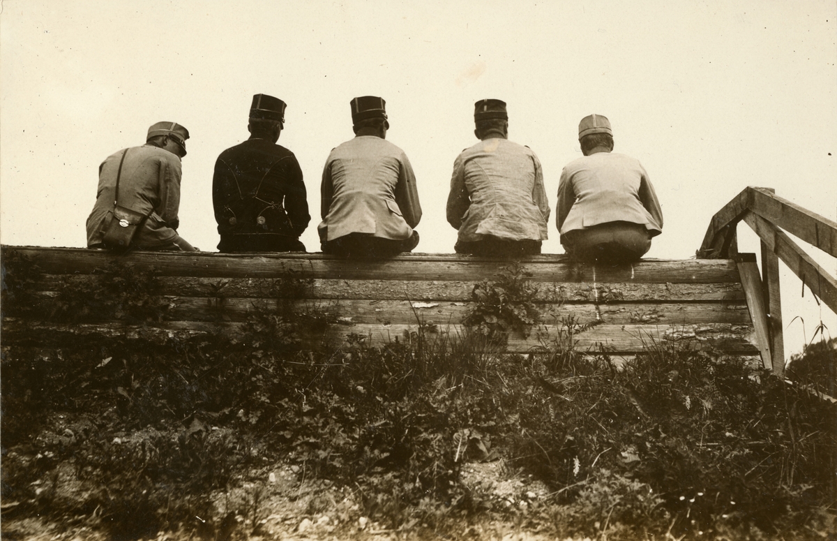 Titel: Soldater sitter på övningsplats.