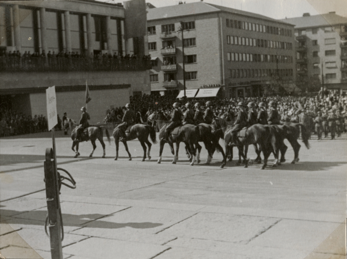 Titel: Text i fotoalbum: "Stora Militärparaden genom Göteborg 19/4 1942".
