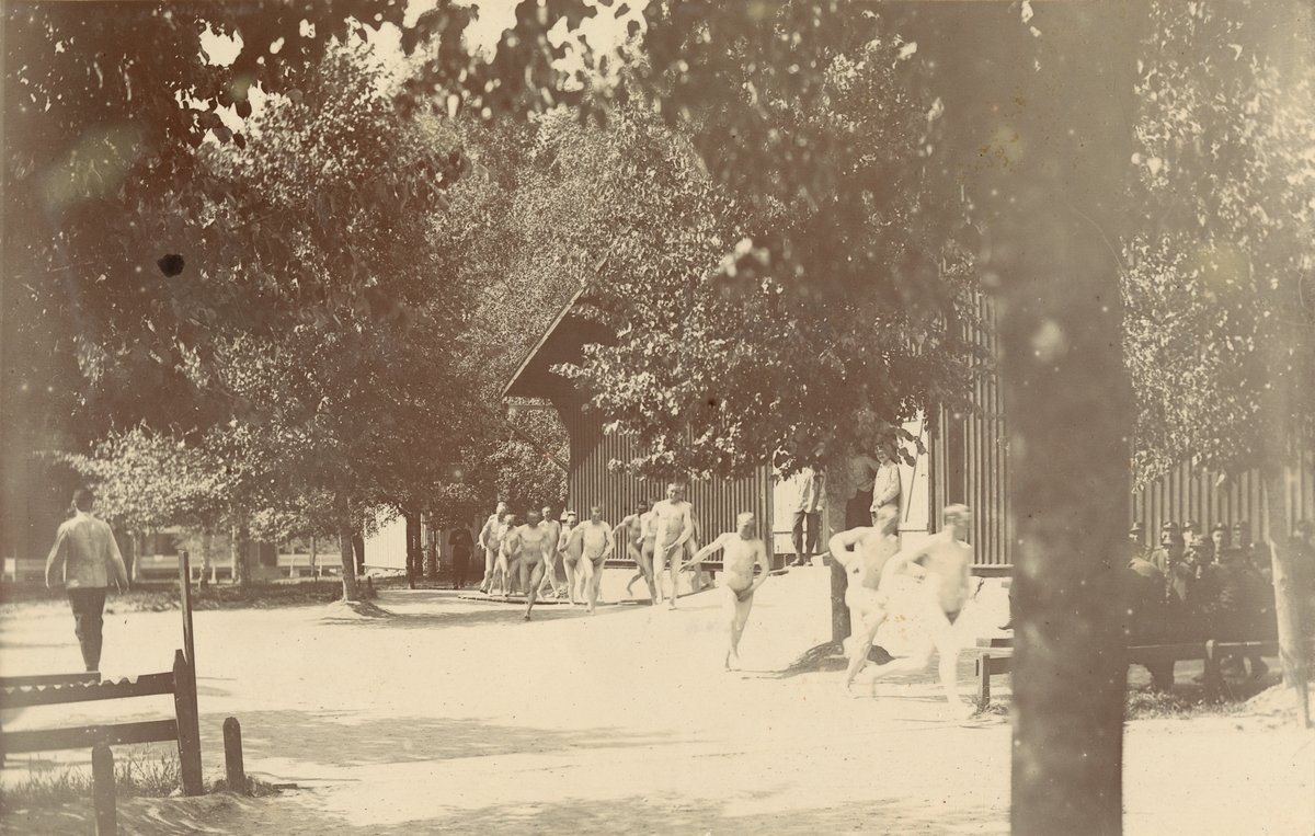 Titel: Soldater springer runt ett barack.
