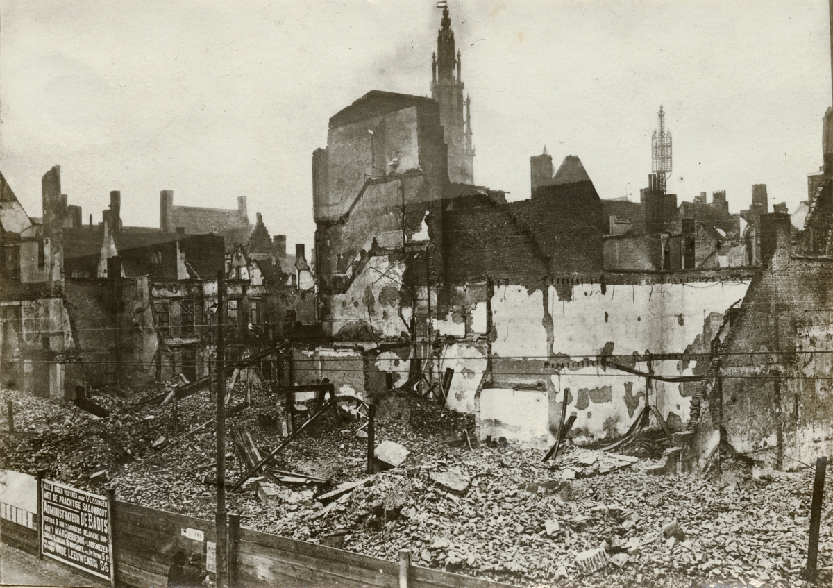 Titel: Bombskador i Antwerpen efter zeppelinbombning.