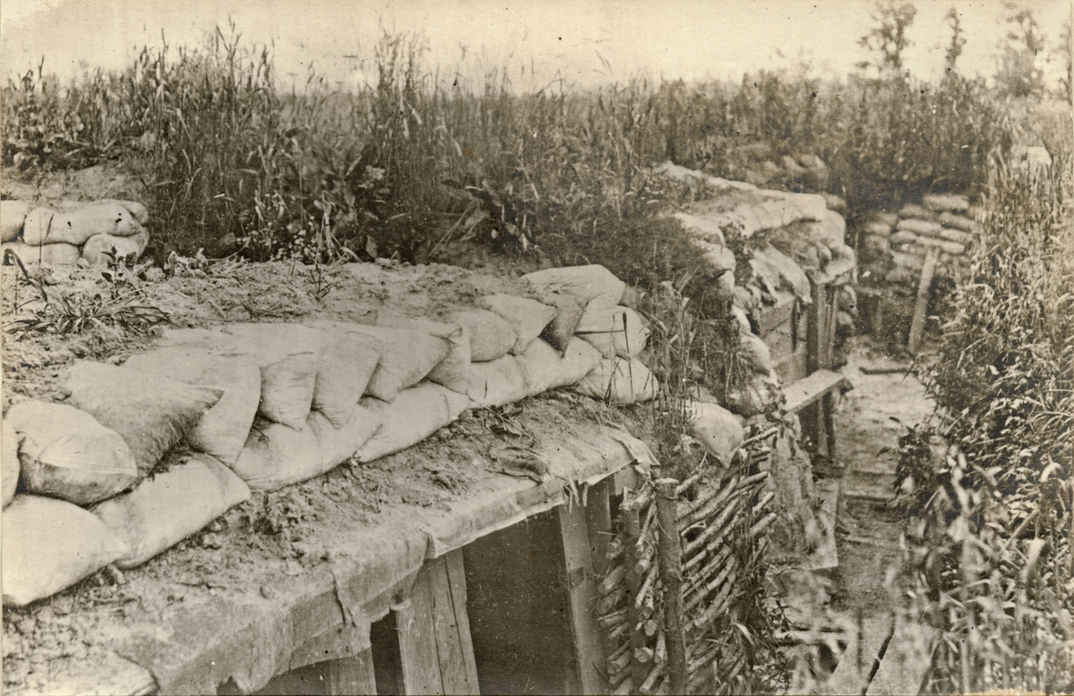 Titel: Text i fotoalbum: "Tyska ställningar i Langemark före attacken den 22.4.15"