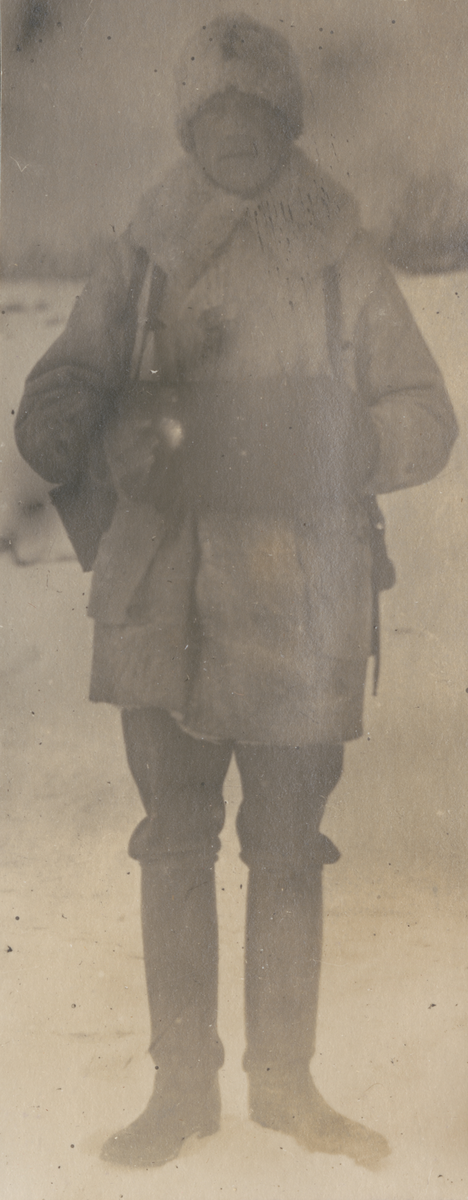 Text i fotoalbum: "Löjtnanten 4/7-1916. Gick först som menige man och sedan som troppförare vid 1sta kompaniet, och förde sedan som kompanichef efterhand alla fyra kompanier inom regementets första bataljon."