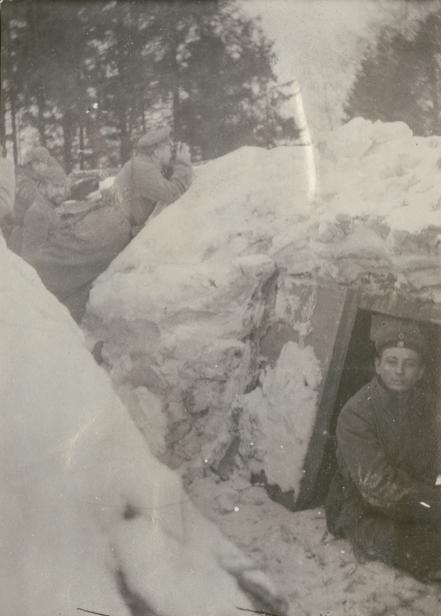 Titel: Text i fotoalbum: "Skyttegrafvar nedgrfd i jorden".