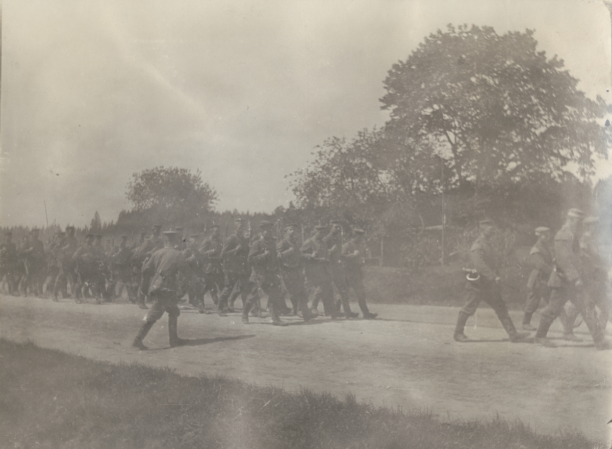 Titel: Text i fotoalbum: "Från H. M. Kajsarens besök å Mitau den 25 maj 1916. 1/34 på väg till paraden."