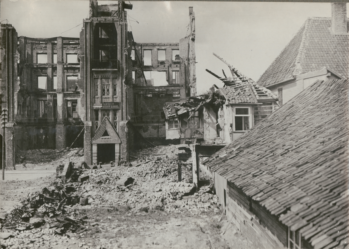 Titel: Text i fotoalbum: "Mitau. Förstörda hus"