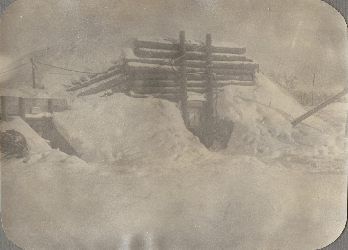 Text i fotoalbum: "Januari 1917. (då vi hade att uthärda svåra ryska anfall, Winterschlacht am der Aa). Olai ställningen. Bombsäkert sanitätskyddsrum "
