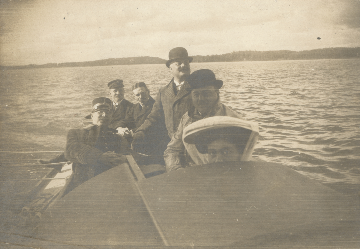 Titel: Text i fotoalbum: "Utanför Waxholm 1909 med kammarherre Leuhusens kutter."