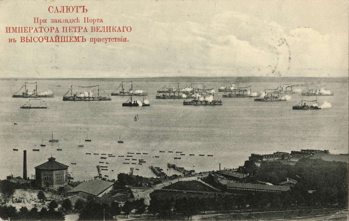 Text i fotoalbum: "Reval, ryska flottan ger salut."