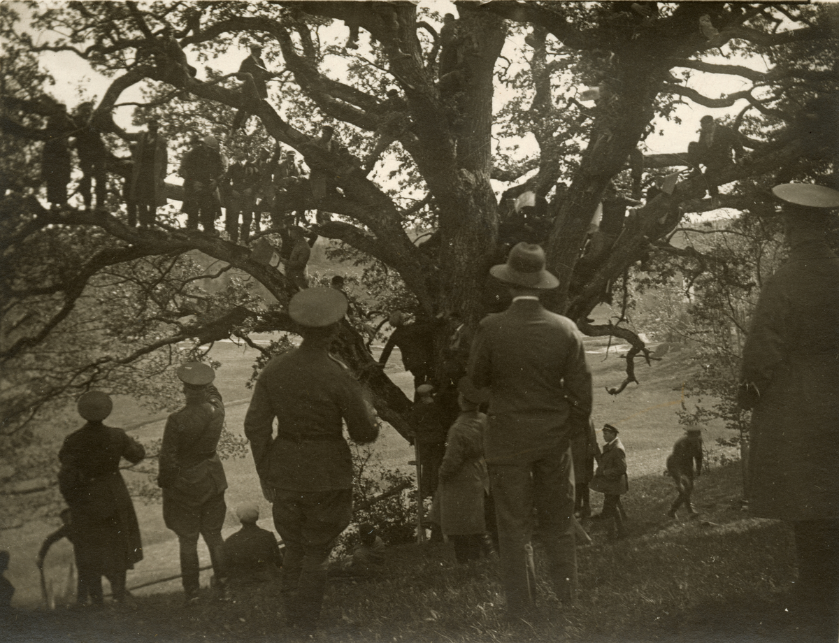Titel: Människor samlade kring ett träd.