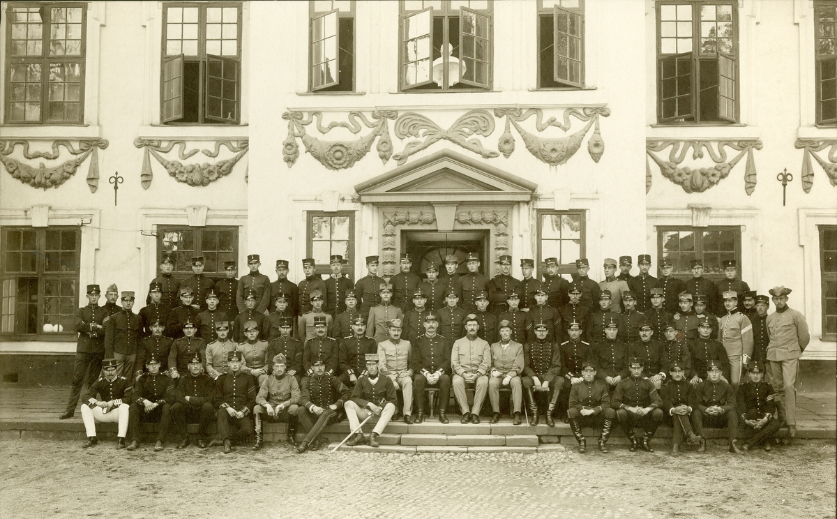 Titel: Grupporträtt av utexaminerade elever från krigsskolan.