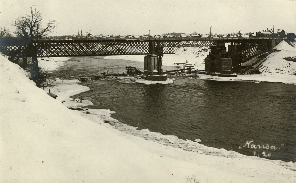 Titel: Text i fotoalbum: "Den provisoriska bron mellan Narva-Jamburg."