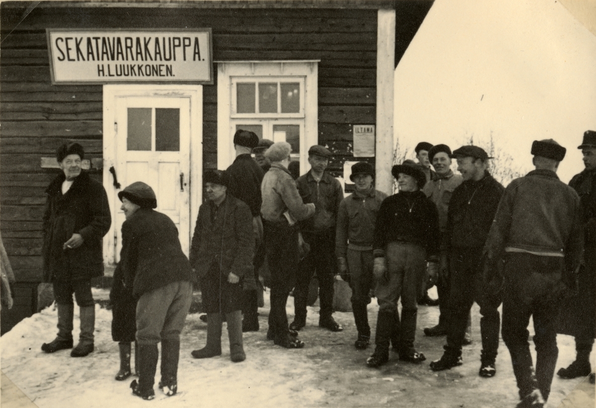 Titel: Text i fotoalbum: "Studieresa med general Alm till Finland 1.-12. mars 1939. Urinvånarna äro nyfikna."