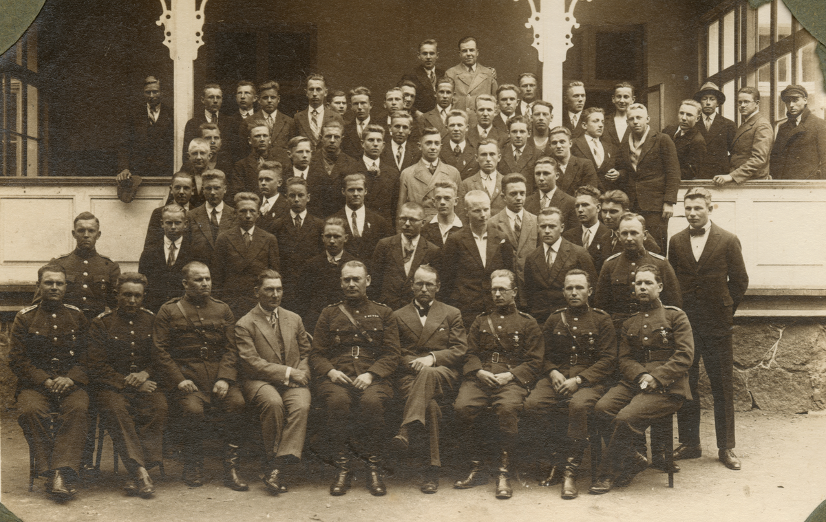 Titel: Gruppbild med soldater och civila.