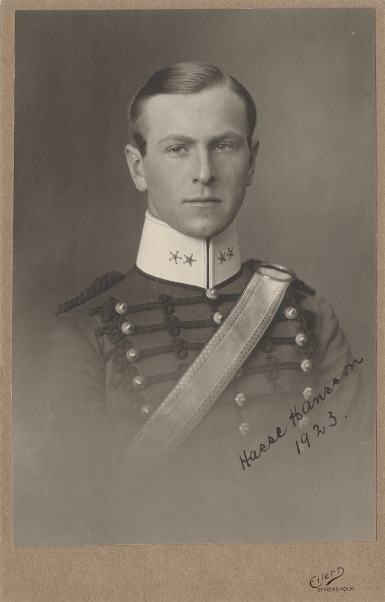 Porträtt av Hasse Hansson, löjtnant vid Wendes artilleriregemente A 3.