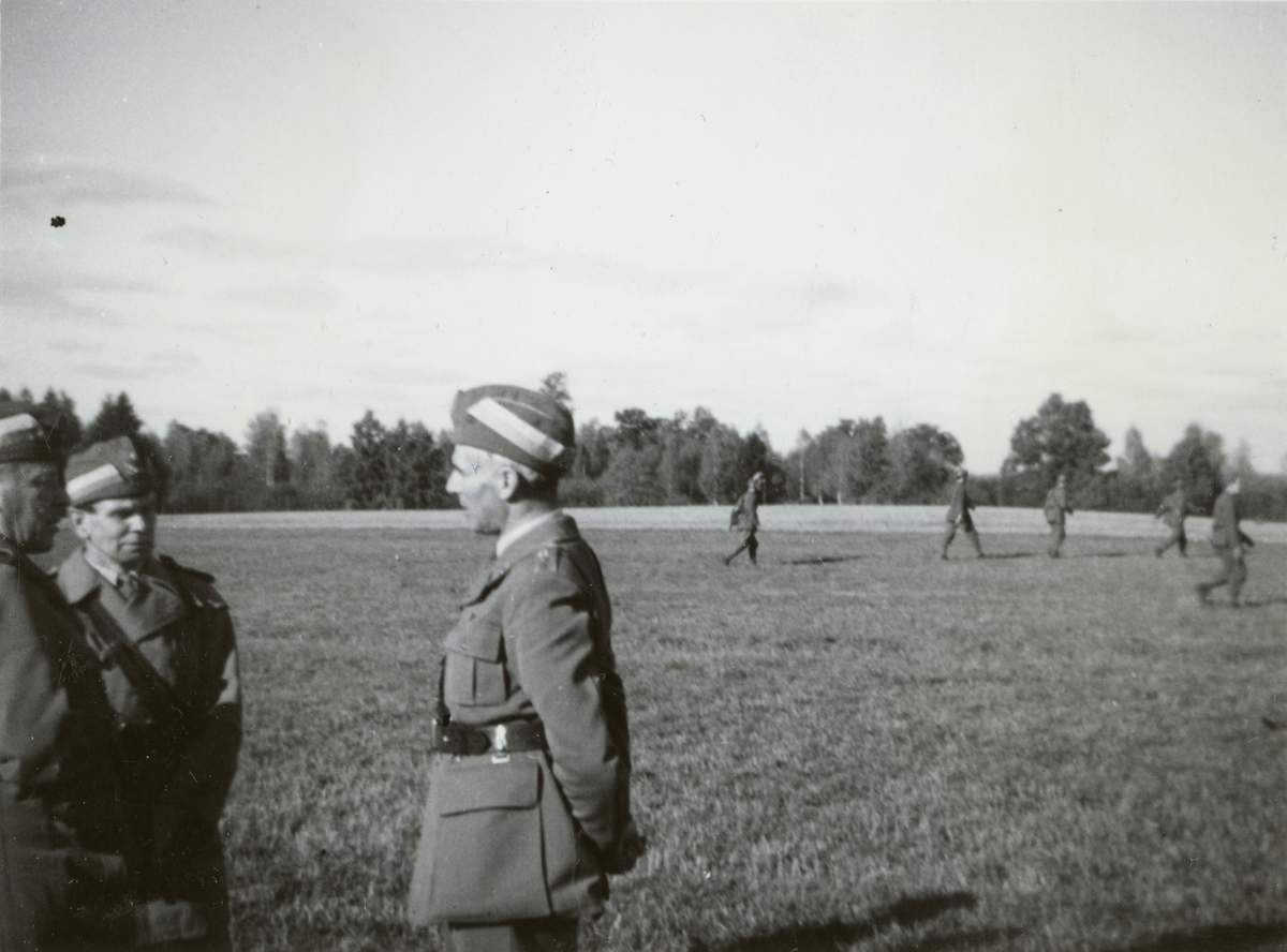 Text i fotoalbum: "Brigfälttjänstövning hösten 1950. Urlastning på linjen i trakten av Fjugesta. Philipsson".