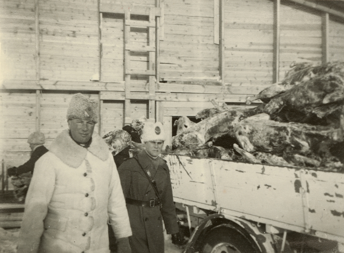 Text i fotoalbum: "Studieresa i Övre Norrland, mars 1940. Segerborg, köttmag.".