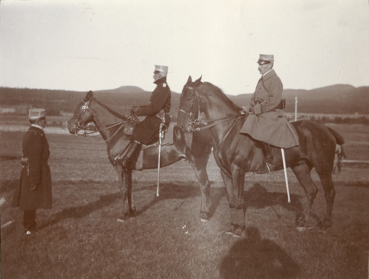 Text i fotoalbum: "Fälttjänstöfningarna vid Östersund. Ryttm Burén, major Ribbing, löjnt. v. Essen".