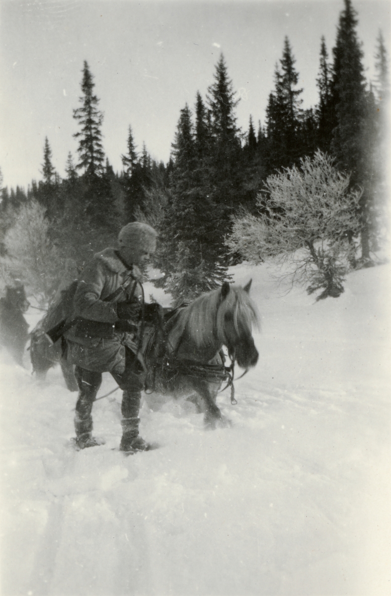 Text i fotoalbum: "Vinterövningarna 1930. Övningsmarsch Björnänge-Kallsjön den 19.-20. febr. Trampet går".