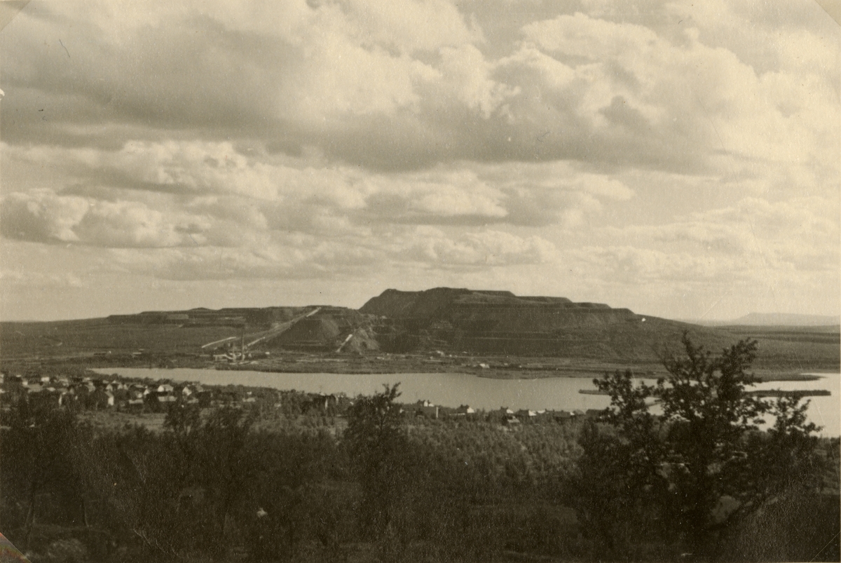 Titel: Text i fotoalbum: "18.7 Kiruna. Kirunavaara liknar ett sydafrikanskt trappberg."