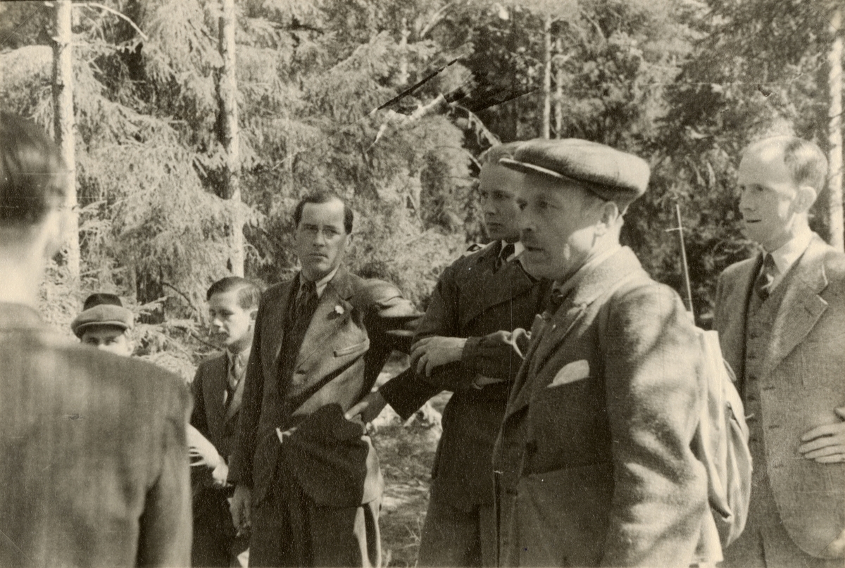 Titel: Text i fotoalbum: "Exkursion på Järvafältet 2.5.1938. Jägarmästare Kihlman föreläser om skogsvård."