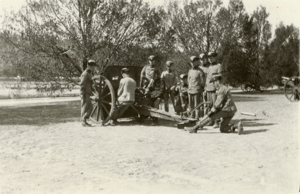 Elever från Krigsskolan Karlberg övar med 7,5 cm kanon m/1902.