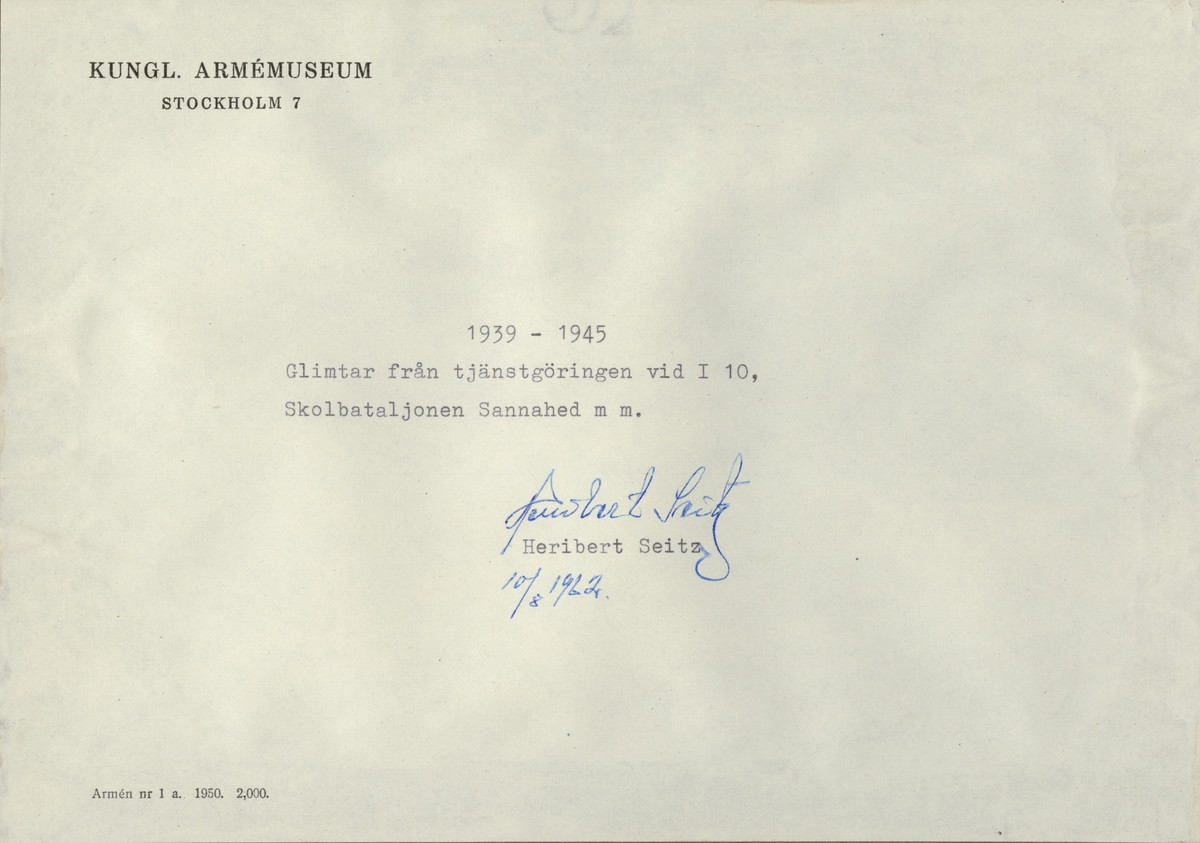 Titel: Fotoalbum innehållande bilder från åren 1939-1945 föreställande Södermanlands regementet I 10.