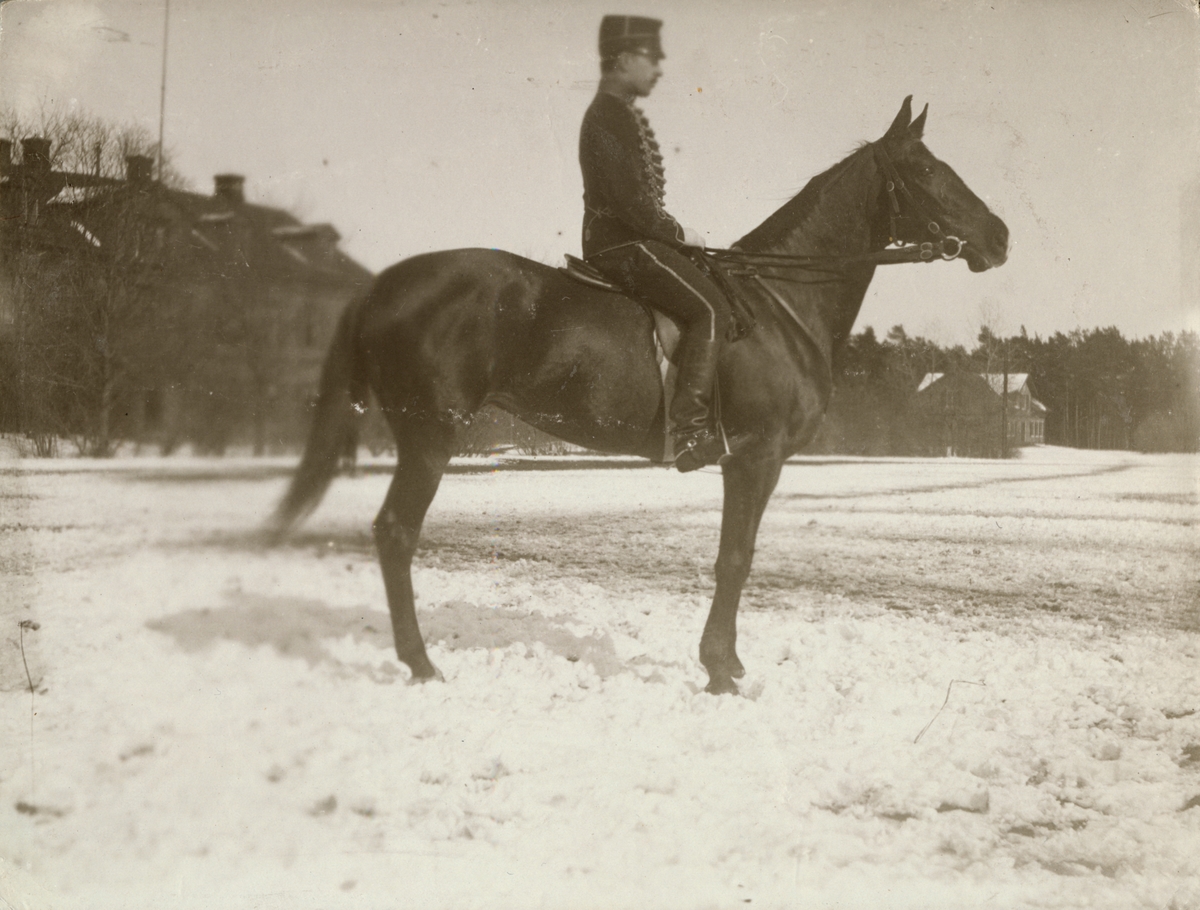 Titel: Text i fotoalbum: "Ränneslätt K 4 Kav. aspirantskola 1900. Carl Trägårdh".