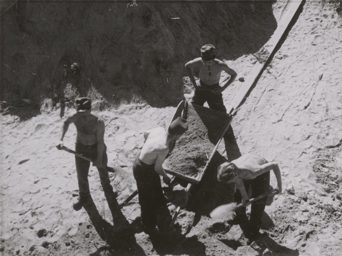 Titel: Text i fotoalbum: "Vi gräver skyddsrum vid Täppan".