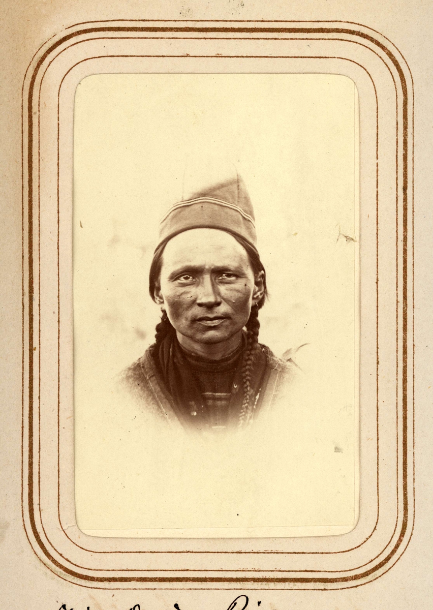 Porträtt av Stina Larsdotter Rim, 30 år, Sjokksjokk. Ur Lotten von Dübens fotoalbum med motiv från den etnologiska expedition till Lappland som leddes av hennes make Gustaf von Düben 1868.