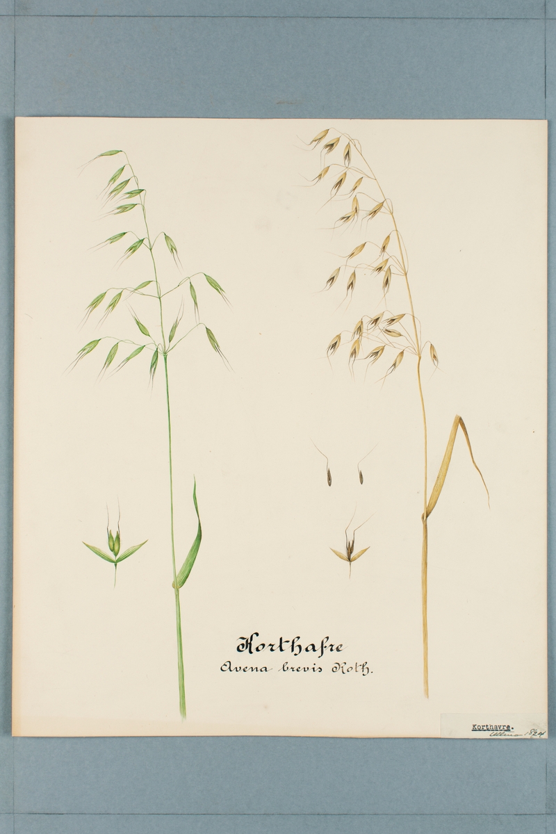 Sveriges kulturväxter. Illustration utförd av Henriette Sjöberg. Korthavre. Odlad Ultuna 1874. Inv. nr. C101 : 197.