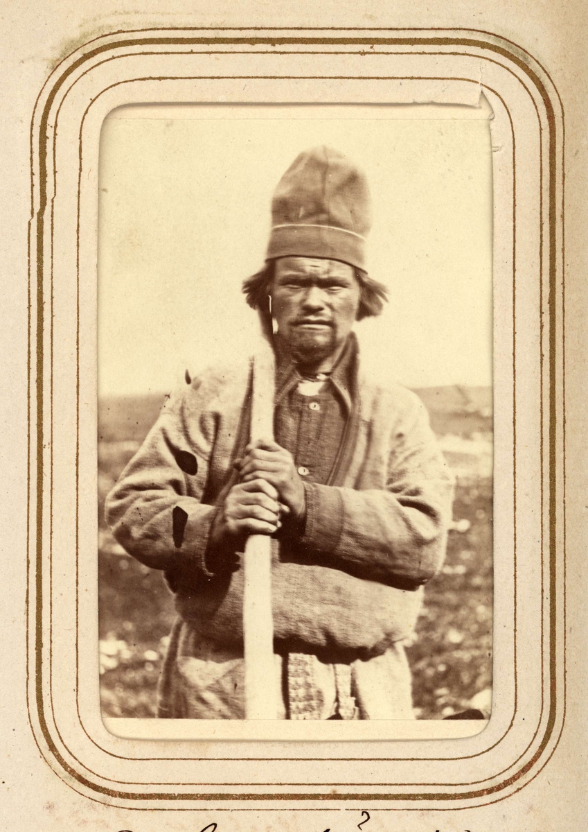 "Nils Granström junior, 26 år, Tuorpon". Porträtt av Nils Nilsson Granström ur Lotten von Dübens fotoalbum med motiv från den etnologiska expedition till Lappland som leddes av hennes make Gustaf von Düben 1868.