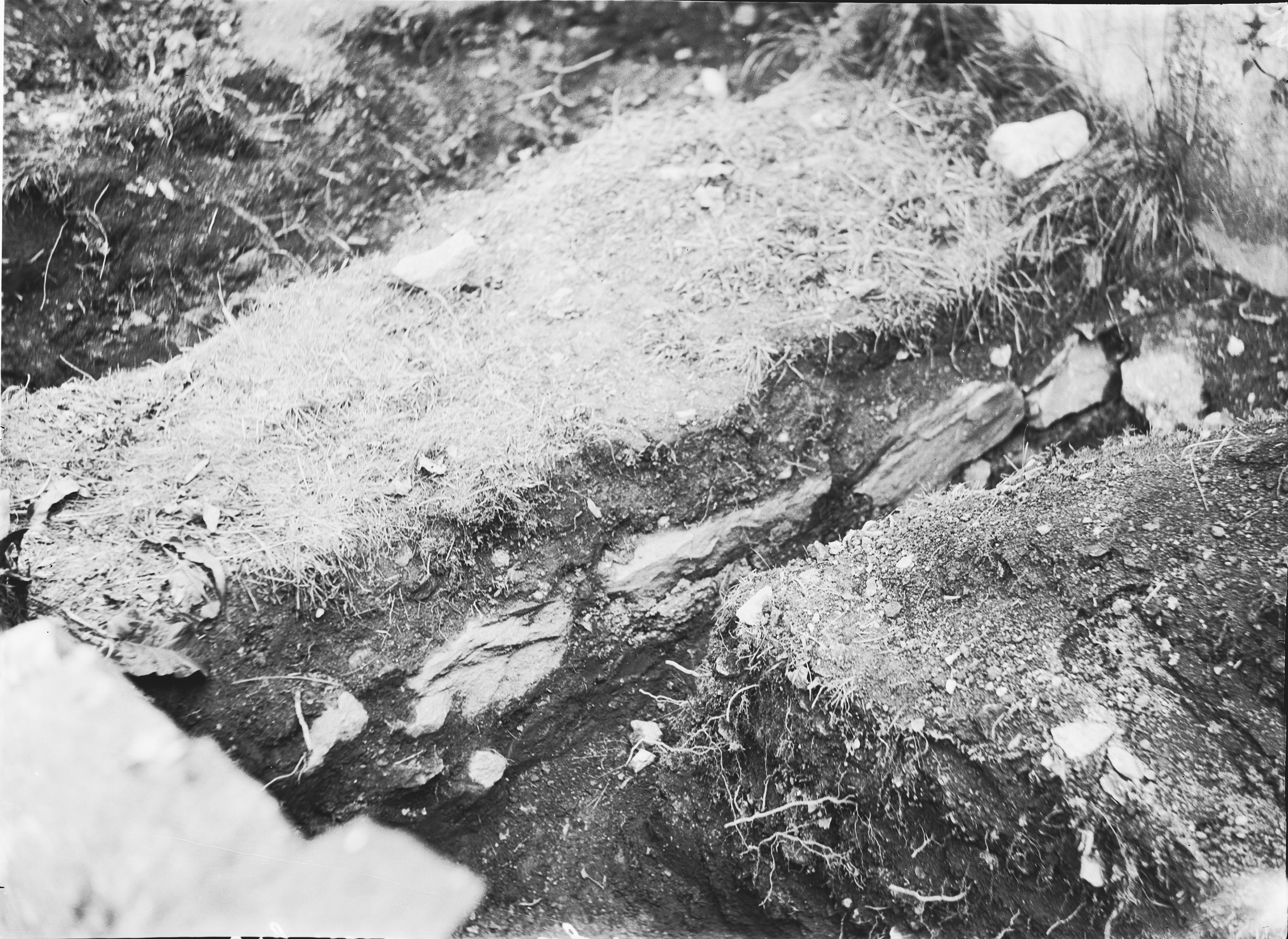 Södra murens västra del, utanför kyrkogårdsmuren, med sydvästra hörnet, mot sydväst.