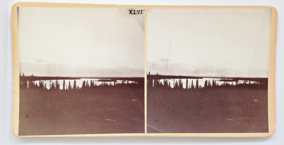 Stereoskopbild med påskrift "Utsigt från Porjus, öfver Stora Lule-elf mot Luopen."