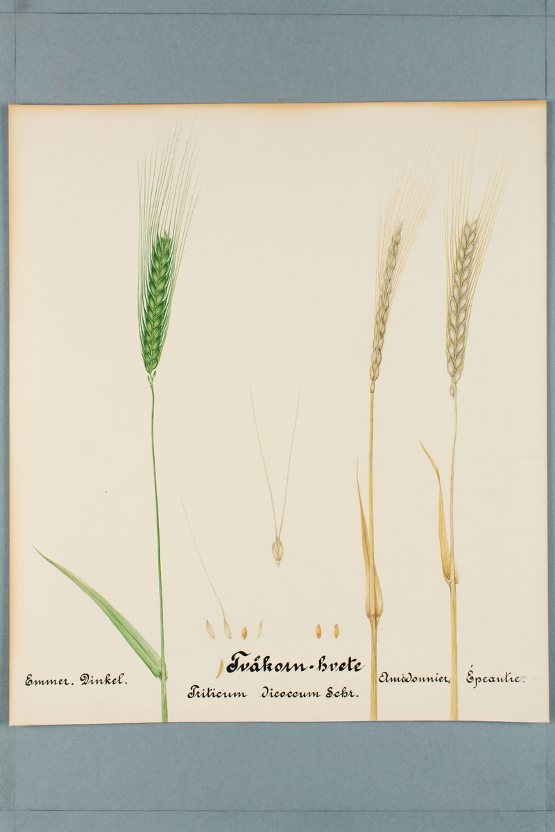 Sveriges kulturväxter. Illustration utförd av Henriette Sjöberg. Emmer, Tvåkornvete. Odlingsplats och datering saknas.