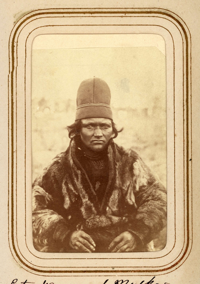 Porträtt av Lotso Vannar f. Mulka, 48 år, Sirkas Sameby. Ur Lotten von Dübens fotoalbum med motiv från den etnologiska expedition till Lappland som leddes av hennes make Gustaf von Düben 1868.
