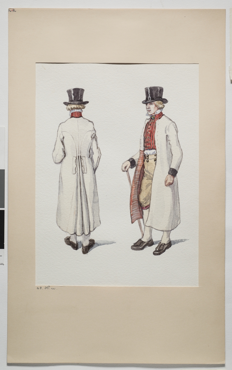 Högtidsdräkt för män Österåkers socken, Oppunda härad, Södermanland. Akvarell av Emelie von Walterstorff.