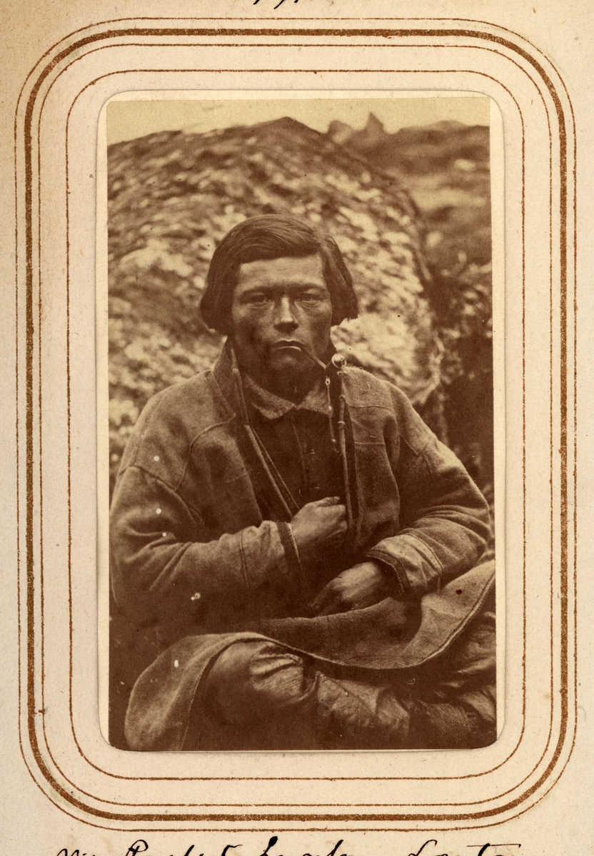 Porträtt av Nils Paulus Larsson Länta, 26 år, Sirkas sameby. Ur Lotten von Dübens fotoalbum med motiv från den etnologiska expedition till Lappland som leddes av hennes make Gustaf von Düben 1868.