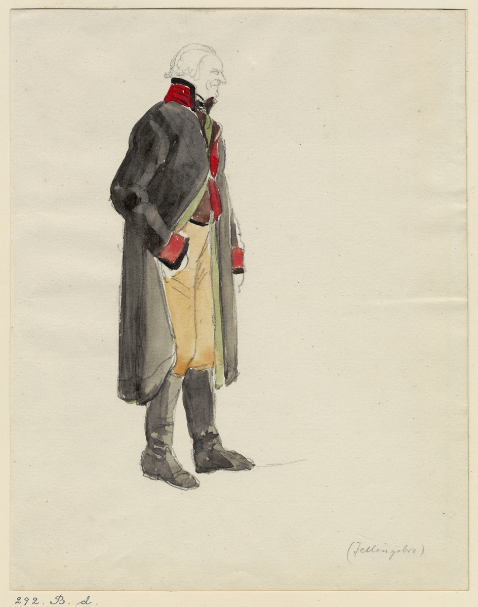 Mansdräkt från Fellingsbro (från sidan). Västmanland. Fellingsbro sn. Akvarell av J. W. Wallander