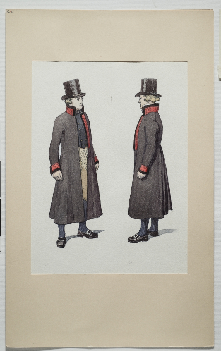 Högtidsdräkt för man. Fellingsbro socken Västmanland. Akvarell av Emelie von Walterstorff.