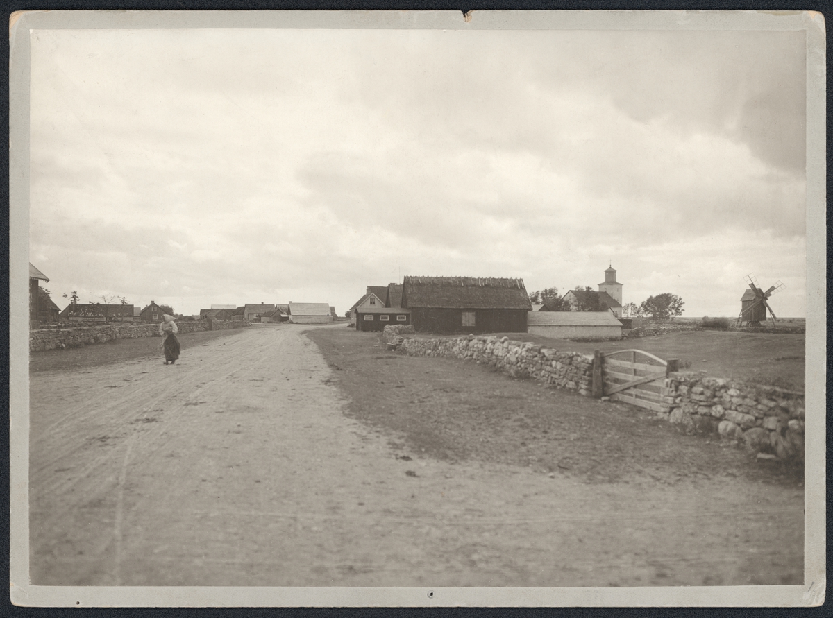 "Rundt södra Alfvaren, Öland. Parti från Gårdby by med Gårdby kyrka i Gårdby socken."