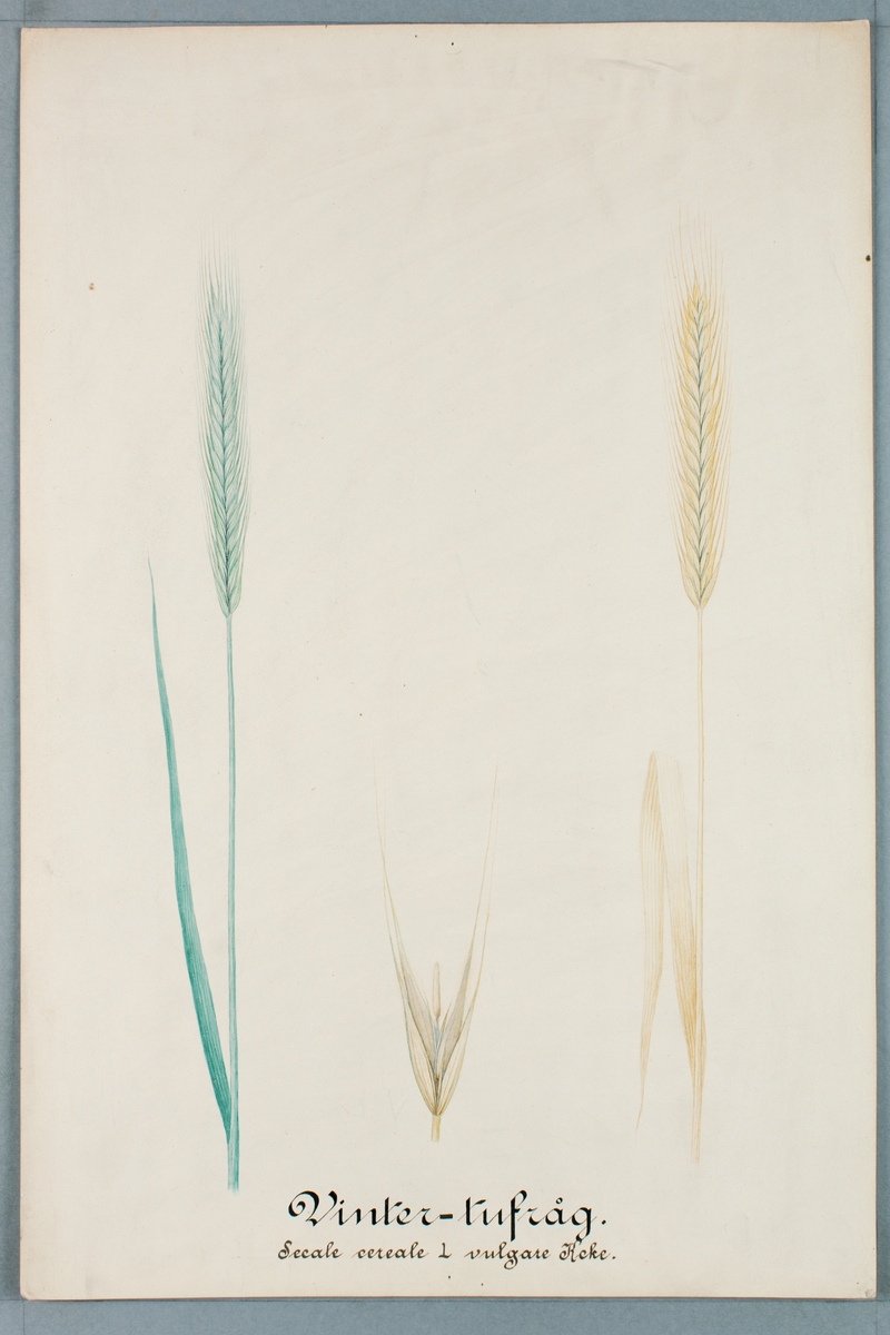 Sveriges kulturväxter. Illustration utförd av Henriette Sjöberg. Råg, Vintertuvråg. Odlad Ultuna 1872.