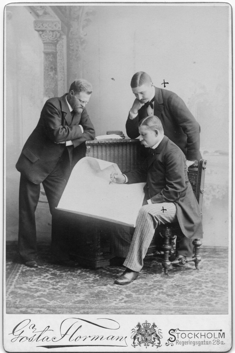 N Ekholm, N Strindberg samt S A Andrée sittande. Ett fotografi tillägnat kapten H Zachau.