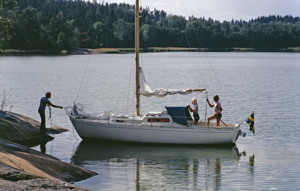 Albin Viggen förtöjs vid en klippa. Marknadsföringbild.