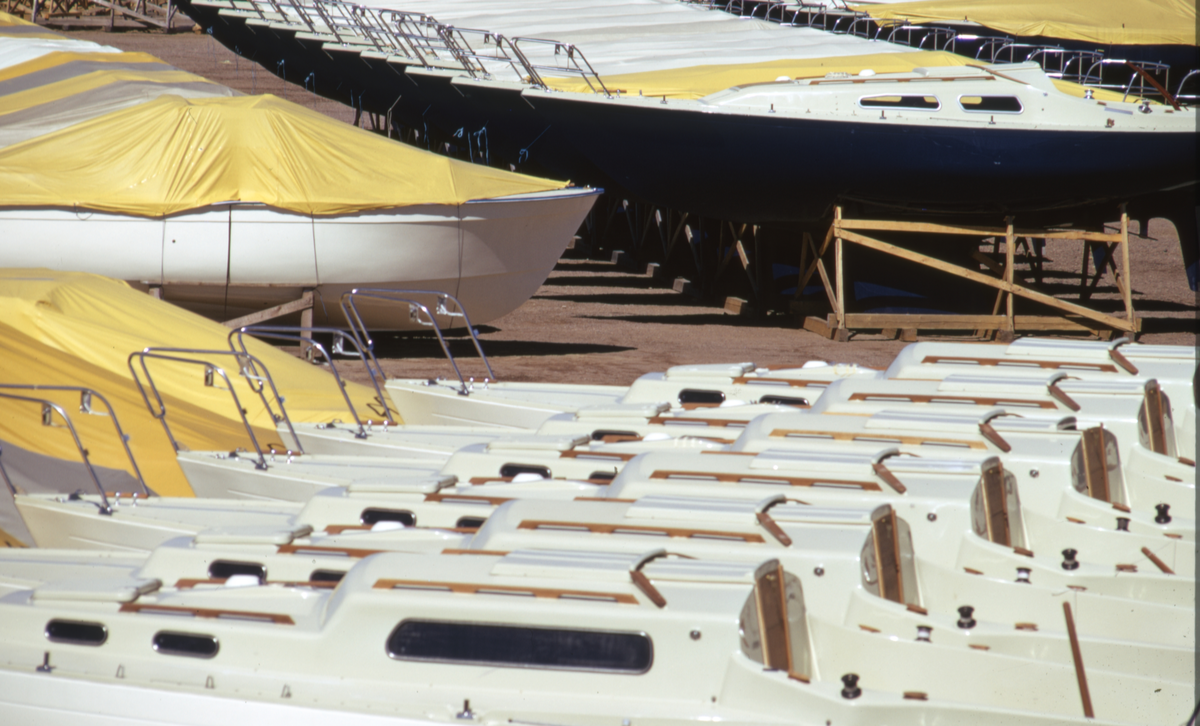 Titel: Båtupplag vid Albin Marins anläggning i Kristinehamn.