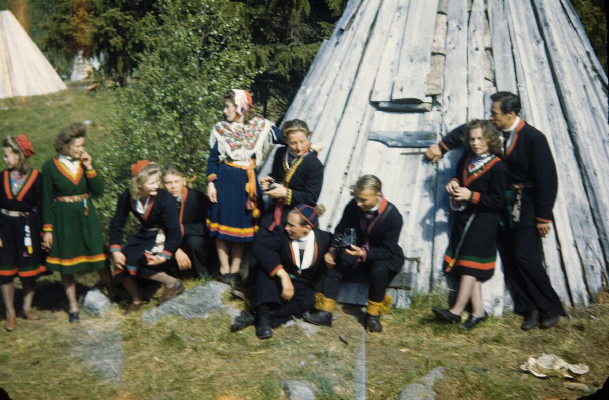 De unga i klanen vid kåtorna. Fatmomakke