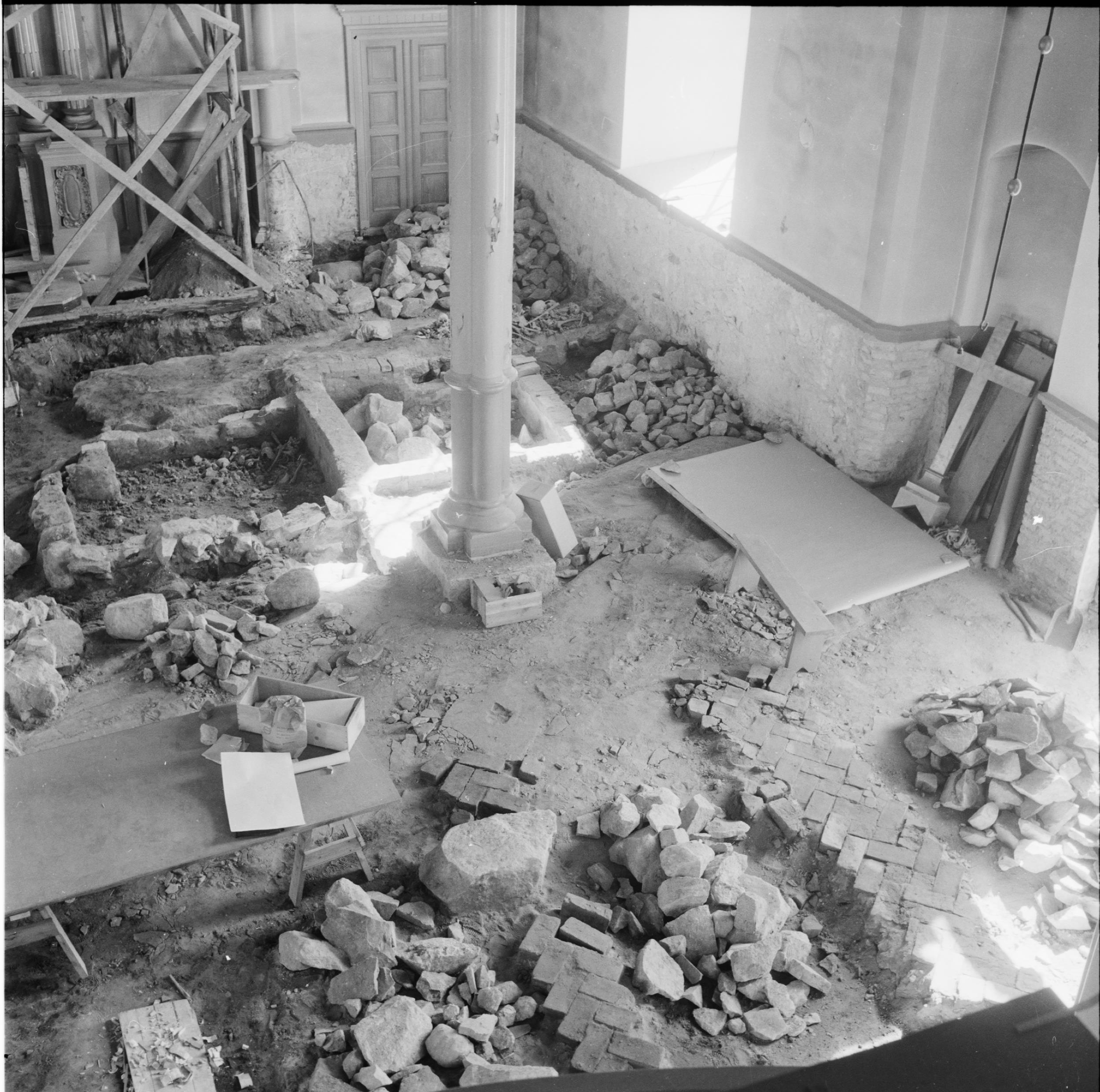 Kyrkan under ombyggnad. Översiktsbild mot sydöst.