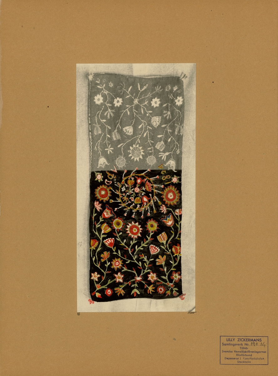 Titel: Vagnsdyna med fritt broderi, yllebroderi.